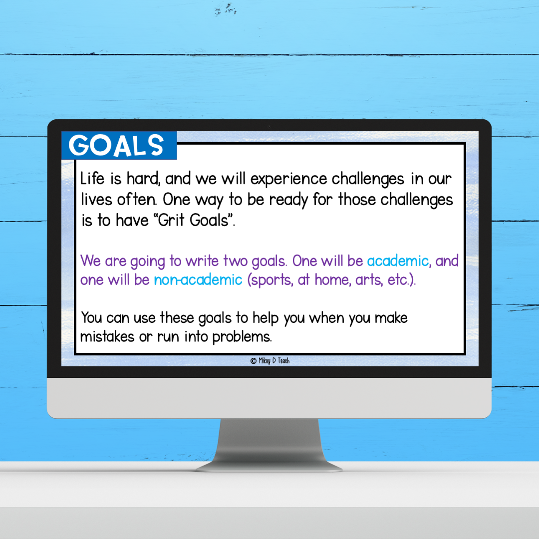 - a definition of grit so that students understand what we’re speaking about during the lesson