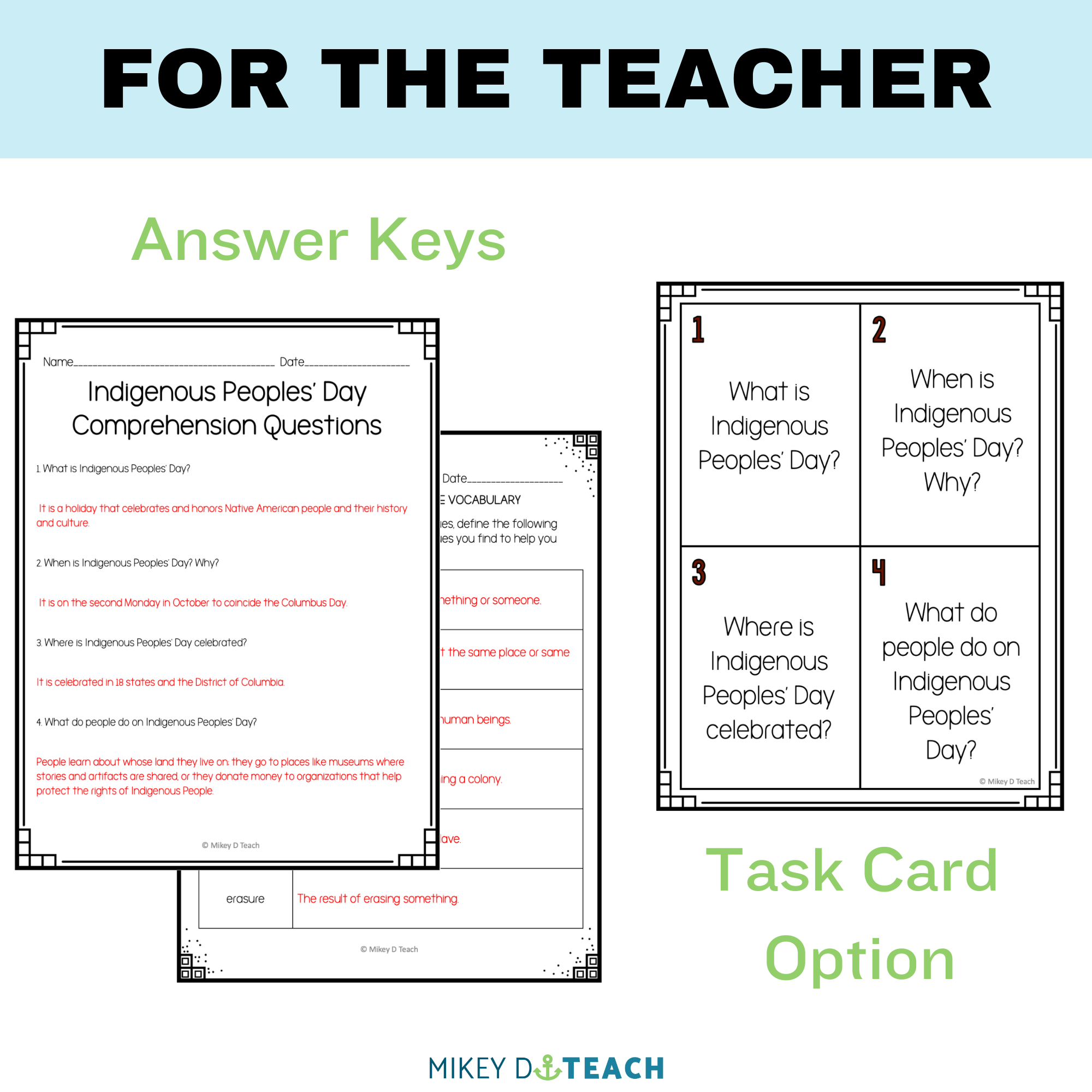 - 8 comprehension questions (including main idea, explicit and inferential details, and compare/contrast)